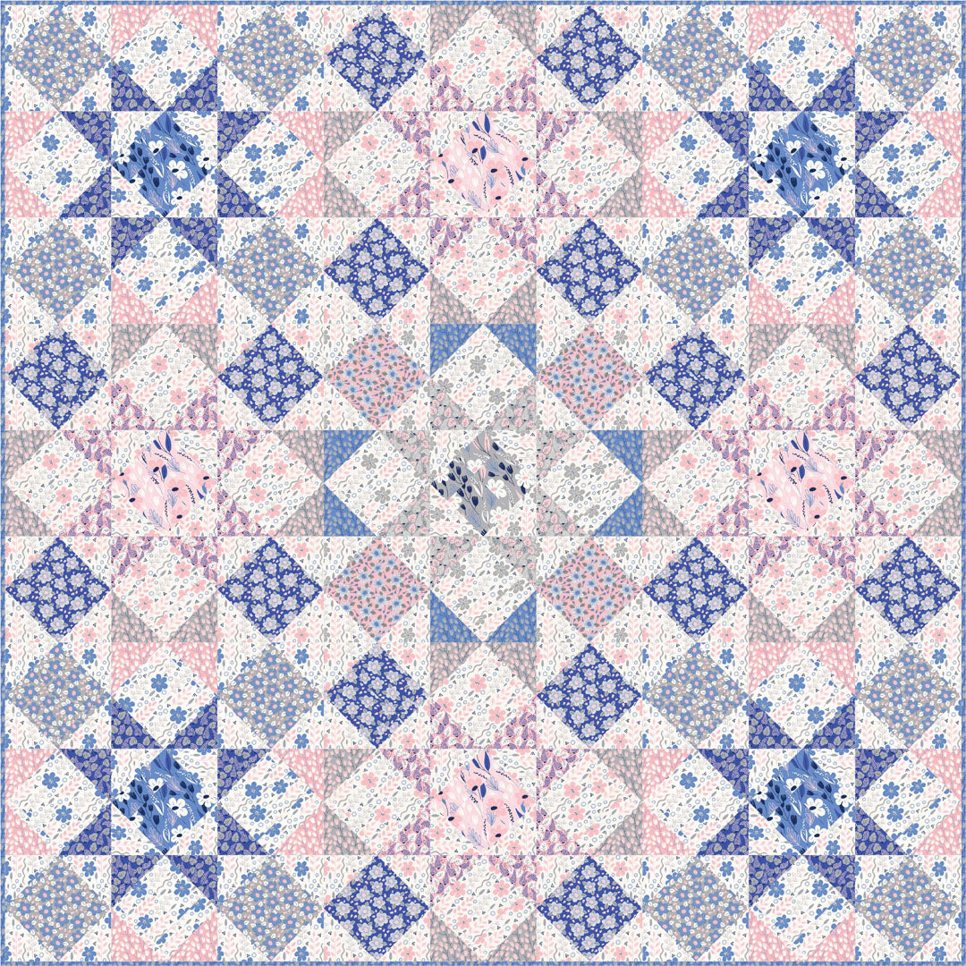 This quilt will be available to download when the fabric is expected to ship in January 2020. The quilt measures approximately 54" square. The pattern is available now.